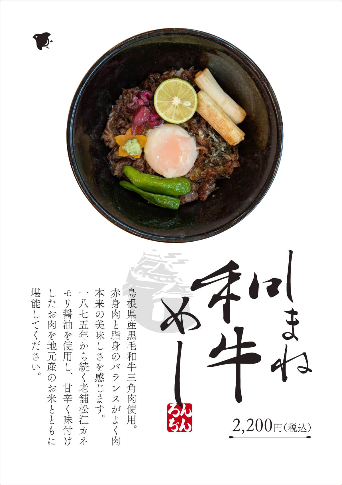 ろんぢんでは、この超絶旨い極上の「しまね和牛」をご堪能いただけます。是非、一度、ご賞味ください。